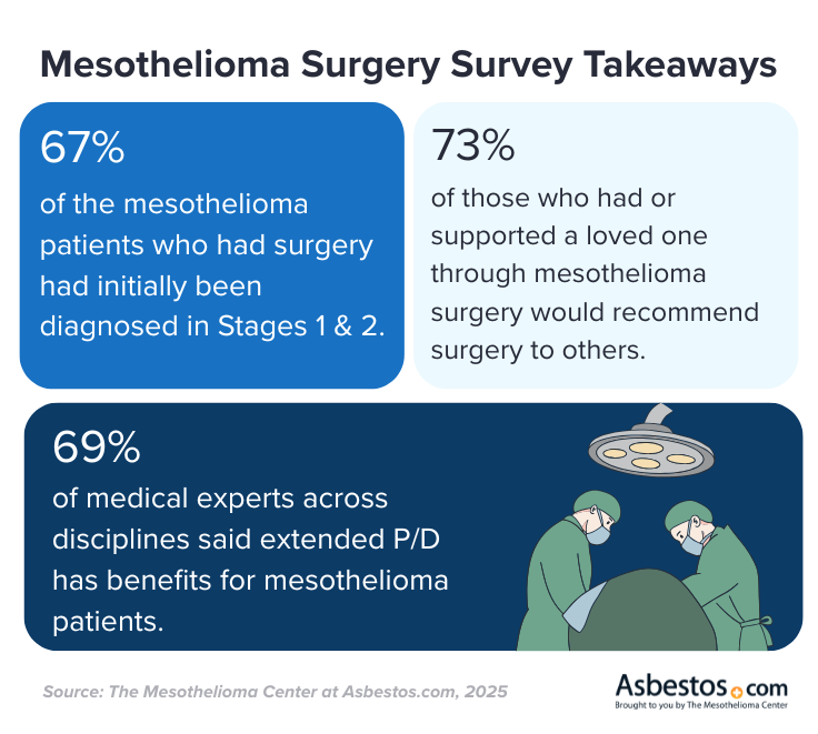 Many mesothelioma survivors and caregivers shared insights about the impact of surgery on their health and daily lives. Their firsthand perspective offers valuable insight into how surgery shapes long-term prognosis.