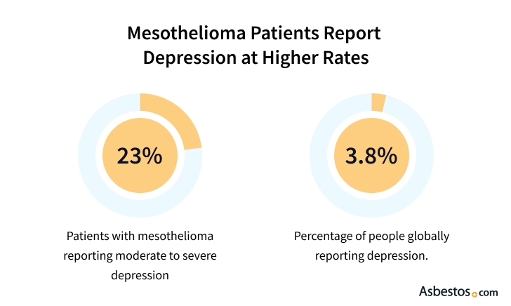 Clinical depression has been found to affect 25 percent of all cancer patients, affecting male and female patients equally. This rate, which is four times higher than average, may be even higher for patients with mesothelioma. Evidence shows the rate climbs among patients whose cancer has progressed, which includes most mesothelioma patients. In fact, one study found that this mood disorder affects 77 percent of bedridden cancer patients.