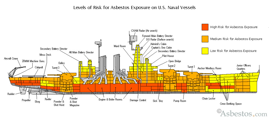 Ships, such as the USS Dwight D. Eisenhower, were known to contain asbestos on all levels.