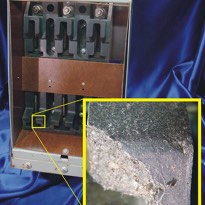 Like pipes, thick electrical cables were sometimes wrapped in asbestos paper or cloth. This wrapping can degrade and crumble over time. Many electrical components were also made of molded asbestos plastic.
